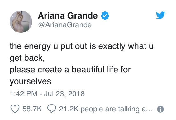 Pete’s Instagram activity coincided with a tweet from Ariana: