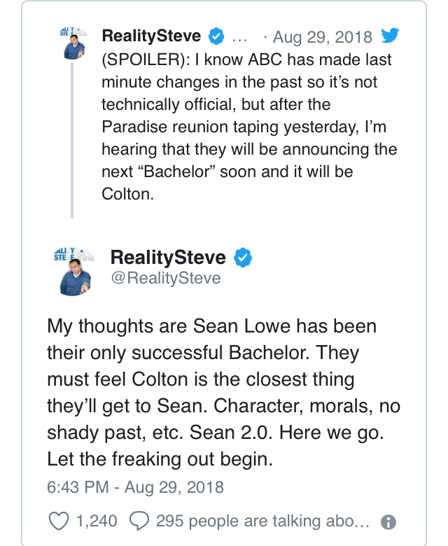 Spivey is quick to add: “On the other hand, if the whole season is ragging on Colton for being a virgin…that would be a complete step backwards…”