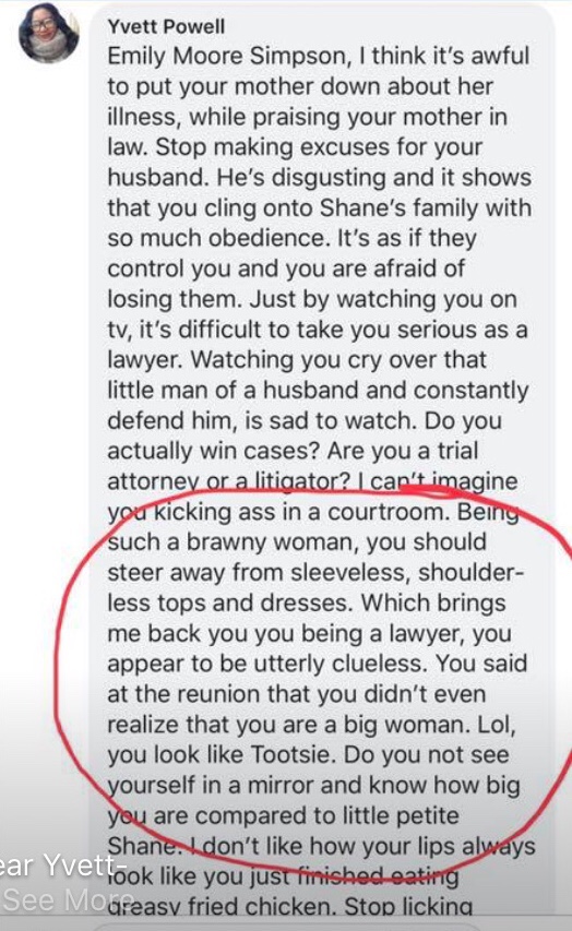 The real crime here? People weren’t doing the normal thing that viewers do, roasting personalities behind their backs rather than directly to them. In addition: seeking them out deliberately to do so. Emily would proceed to divulge that the nastiest types of emails were sent directly to her, with one woman named Yvett going to the link of an event she posted about in order to share these unsolicited opinions: